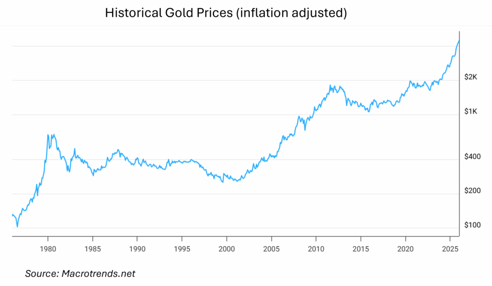 The rise in the price of gold has been one of the most compelling financial news stories during 2025. The value of the precious metal increased by 64.5% this year alone. Assigning reasons for the rise and fall of gold continues to be a favorite pastime for investors. Gold has at times been viewed as a hedge against the U.S. dollar, a hedge against inflation, a bastion of safety in times of market stress, and a non-correlated asset for diversified portfolios. Gold is a speculative instrument, and this is not the first time we have seen this type of volatility. The history books will note that after the peak of gold prices in 1980, it took another 27 years to return to those levels.